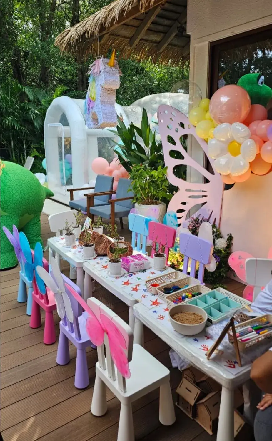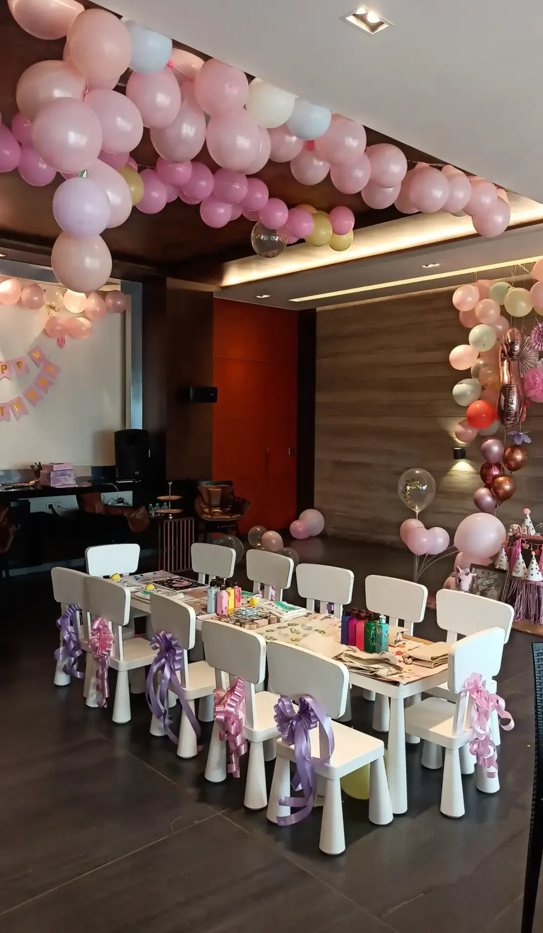 Kids White Tables & Chairs Set — Includes 6 white tables and 18 matching chairs, perfectly sized for kids’ parties, art activities, and play events. Stylish, sturdy, and comfortable setup for any occasion.