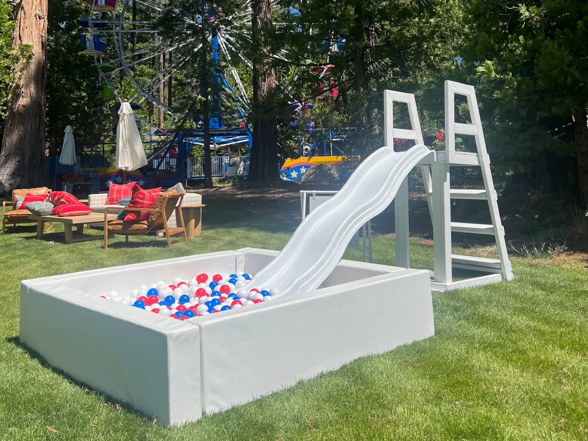 White Ball Pool with Slide (12×15 ft) : A fun and elegant play setup filled with 5,000 soft white balls and a safe slide for endless entertainment. Perfect for birthday parties, indoor events, and kids’ play zones. Easy to set up and transport.