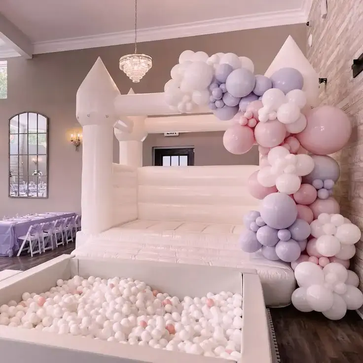 White Bouncing Castle with Ballpool — A beautiful white-themed inflatable castle that adds charm and fun to any kids’ event or birthday party. Safe, colorful, and perfect for endless jumping joy!